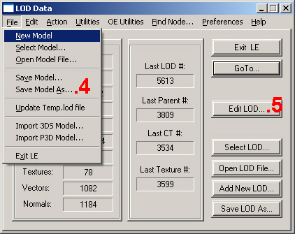At this point we can export the model by simply clicking File → Save Model As… (4) then entering in a filename (such as F16C.lod) and choosing where to save the model to. Once saved, we find ourselves still at the 'LOD Data' screen.